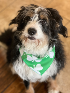 Tucker is a striking F1 Bernedoodle with a silky tri-color coat and beautifully defined points. He consistently produces richly colored puppies and carries the best of his Bernese Mountain Dog heritage, with a thick, stocky build in a compact, easy-to-manage size.